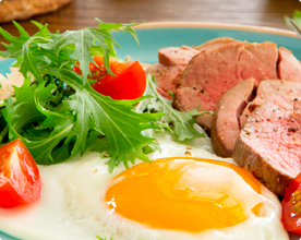 • ステーキのガーリックとパセリのリゾット添え